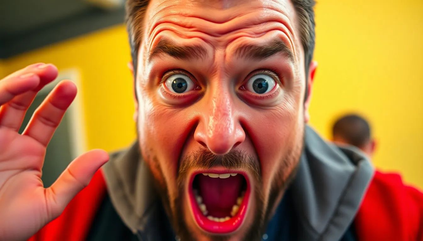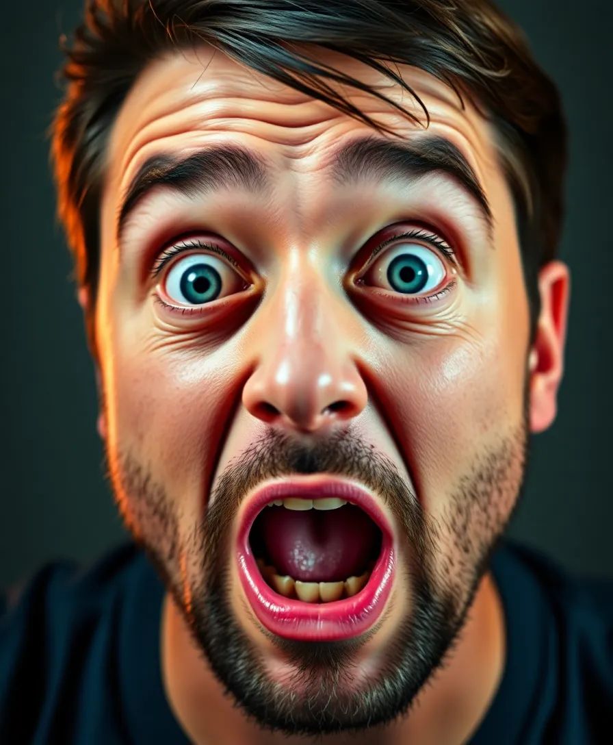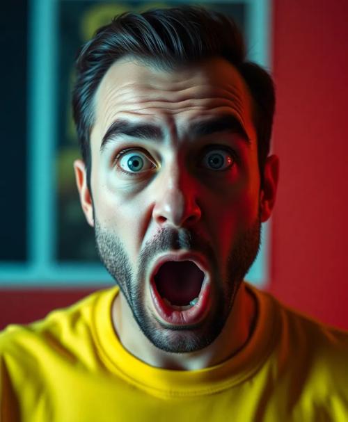 YouTube thumbnail style image of a shocked man, exaggerated facial expression, bright vibrant colors, bold composition, high contrast lighting, clickbait design, ultra sharp focus, 8K